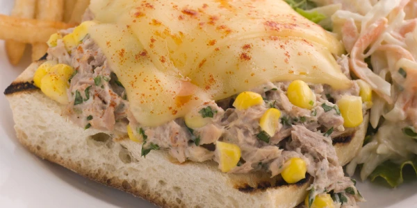 Se pune si tonul si se amesteca bine. Apoi, pe o foaie de tortilla se intind frunza de salata si compozitia cu ton. Se procedeaza la fel si cu cea de-a doua foaie de tortilla.